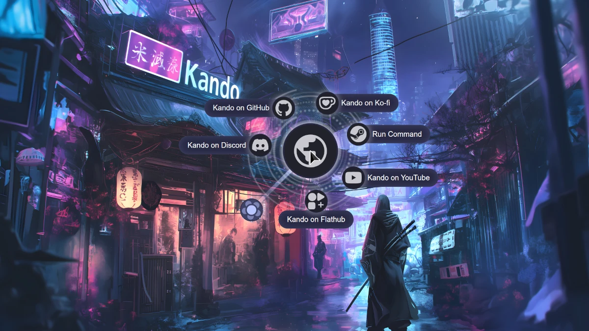 Kando is a free and open-source pie menu. With Kando, you can launch applications, execute keyboard macros, open files, and much more. It is designed to be used with 🖱️ mouse, 🖊️ stylus, 👆 touch, or 🎮 controller input.